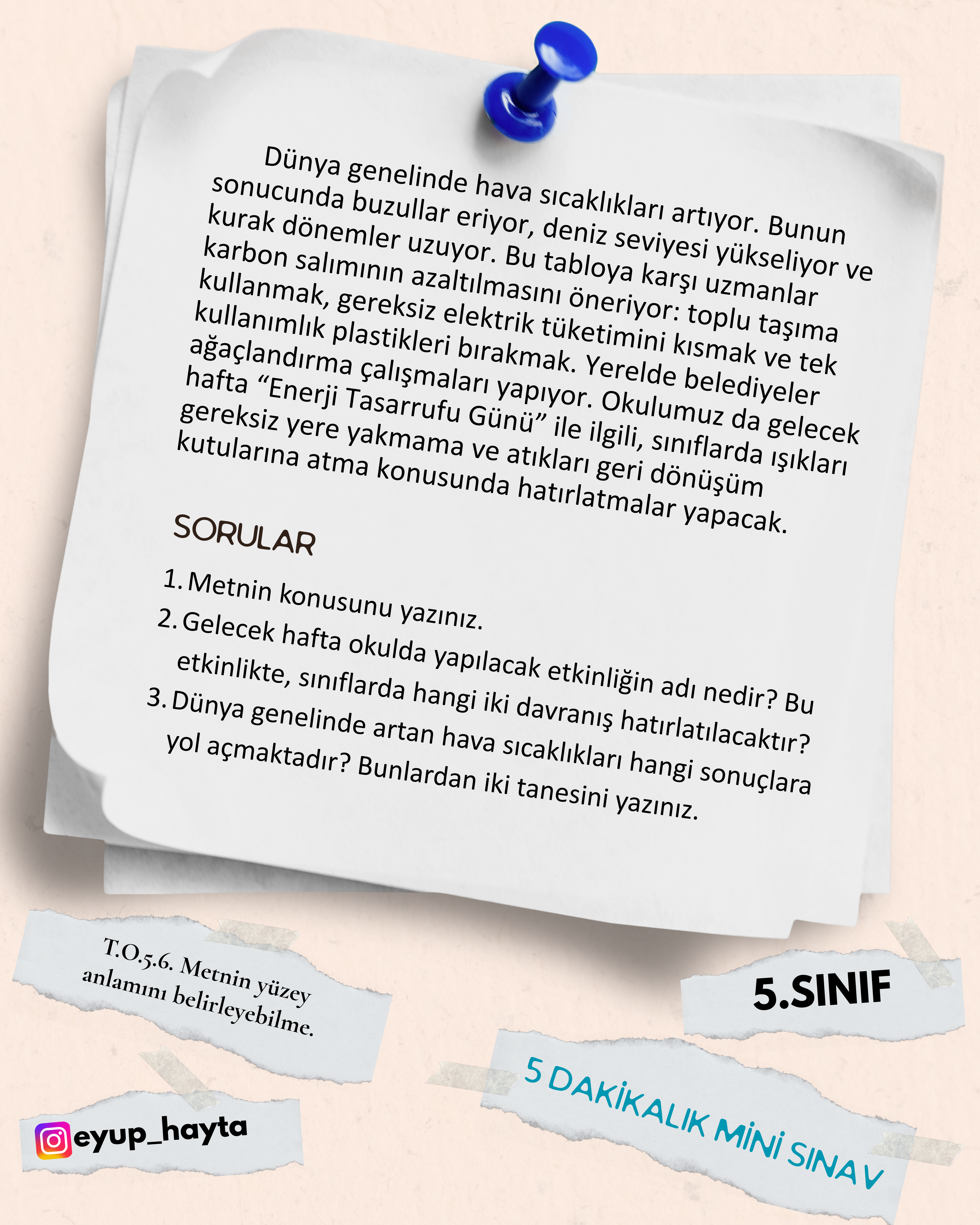 5.SINIF TÜRKÇE KONDİSYON KONU DENEMELERİ